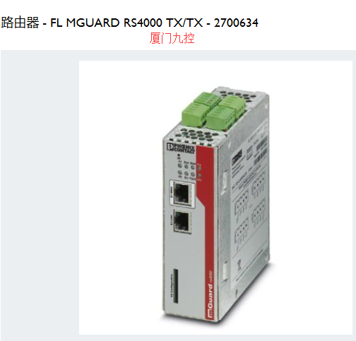 产品详情:FLMGUARDRS4000TX/TX菲尼克斯router2700634厦门九控自动化设备有限公司,是销售国内外有名品牌电器元件的综合卖家专业代理。公司运用现有健全的销售平台在线上线下成立自己的销售网络,为新老客户提供新的购买方法以及自动化装置及零件的解决方案。我们真心愿意与您的公司在许多方面开展合作。在产品销售,工程项目承办和系统开发方面。以下是我们的代理商和经销产品的部分清单,如果您有任何需要,请与我们联络,我们将竭力为您提供优质的服务: